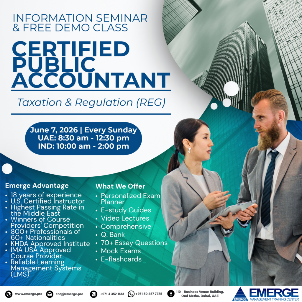 CPA Taxation & Regulation (REG) New Batch commencement on June 7, 2026,